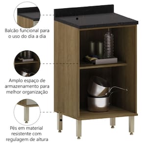O Balcão Duplo com Tampo Isis é ideal para quem procura um móvel prático e funcional. Pode ser utilizado sozinho ou como complemento da cozinha de modelo Isis, possui 2 portas que dispõem de amplo espaço para guardar o que precisar, e 1 prateleira. O tampo permite que você tenha uma bancada versátil e espaçosa com capacidade para colocar eletrodomésticos ou decorações, e o balcão possui pés resistentes e reguláveis que não agridem o piso. Feito com materiais de qualidade trazendo resistência e durabilidade a vida útil do móvel.