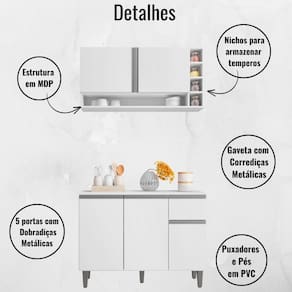O Balcão de Cozinha e Armário Aéreo Vanessa a combinação perfeita de estilo e funcionalidade para sua cozinha. Com um design moderno e elegante, oferece espaço generoso para organizar seus utensílios de cozinha, contando com materiais de qualidade. Adquira agora e transforme sua cozinha em um ambiente sofisticado e prático.