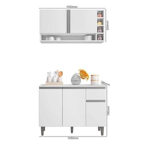 Balcão de Cozinha e Armário Aéreo Vanessa Branco Brilho - AJL