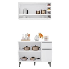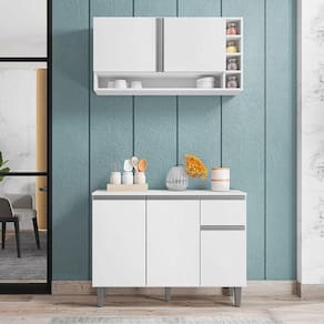 Balcão de Cozinha e Armário Aéreo Vanessa Branco Brilho - AJL