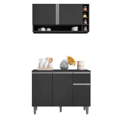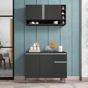Balcão de Cozinha e Armário Aéreo Vanessa Cinza Fosco - AJL