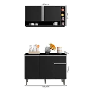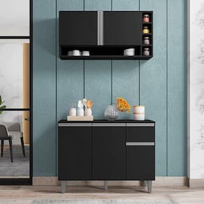 Balcão de Cozinha e Armário Aéreo Vanessa Preto Fosco - AJL