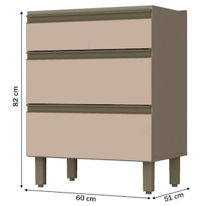 O(a) Balcão de Cozinha évelin 3 Gavetas Duna/Cristal - Henn é produzido em MDF na escala de brilho Fosco, e possui um grau de dificuldade de montagem: Médio.