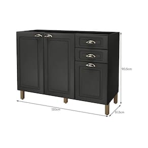 O Balcão de Cozinha Firenze 120cm 3 Portas e 2 Gavetas sem Tampo combina design elegante e funcionalidade para otimizar sua cozinha. Fabricado em MDF e MDP com pintura UV, apresenta estrutura resistente e acabamento sofisticado. Possui 3 portas com dobradiças slow motion, 2 gavetas com corrediças telescópicas e prateleira interna que garante organização prática no dia a dia. Os detalhes em baixo relevo nas portas e gavetas junto aos puxadores concha em metal reforçam o estilo moderno do móvel. Os pés com regulagem de altura proporcionam estabilidade e adaptação ao ambiente. Modelo ideal para compor a base da pia, não acompanha tampo, cuba ou pia.