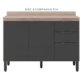 Balcão de Cozinha Firenze com Tampo 120 cm Avena Grafito - Demóbile