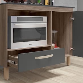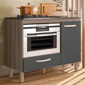 Balcão de Cozinha Fit 1 Porta e 1 Gaveta com Tampo MDP para Cooktop - Nicioli O Balcão de Cozinha Fit 1 Porta e 1 Gaveta com Tampo para Cooktop é a escolha ideal para quem busca funcionalidade e praticidade na cozinha. Fabricado em MDP com pintura UV, oferece resistência e durabilidade. Conta com uma porta com dobradiças metálicas e uma gaveta com corrediças telescópicas, proporcionando armazenamento eficiente. O tampo em MDP já vem cortado, sendo ideal para fogões cooktop de 4 bocas, além de contar com um espaço dedicado para forno ou micro-ondas. Os puxadores em ABS agregam um toque moderno ao design.