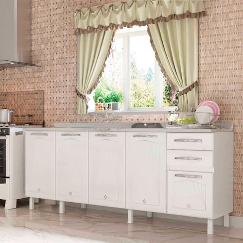 - Não acompanha tampo/pia (peso suportado no balcão: até 30kg).