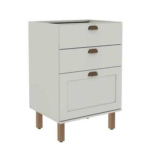 Os produtos da Genialflex combinam design moderno e funcionalidade para tornar seu espaço mais organizado e sofisticado. Produzidos com materiais de alta qualidade, oferecem resistência e durabilidade, além de um acabamento impecável que valoriza qualquer ambiente. O Balcão 600 com 2 Gavetas e 1 Gavetão em MDF é uma opção compacta e funcional, ideal para ambientes como cozinhas ou áreas de serviço. Fabricado em MDF, oferece boa durabilidade e acabamento de alta qualidade, garantindo resistência para uso diário.Com 600 mm de largura, ele possui 2 gavetas pequenas para itens pequenos e organizados, além de um gavetão grande para armazenar objetos maiores. Esse design oferece versatilidade e praticidade, permitindo otimizar o espaço e manter o ambiente organizado. ESPECIFICAÇÕES - Material: MDF/BP 15 mm - Bordas melamínicas -Dobradiças slowmotion com amortecedor -Puxador em abs -Corrediças telescópicas