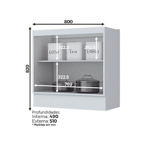 Balcão de Cozinha Henn Americana 80 cm sem Tampo 2 Portas - C355-05