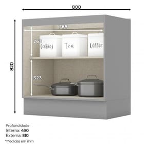 Composto por 2 portas de bater com dobradicas metalicas, prateleira interna, puxadores em metal, este balcao e um modulo avulso da composicao Cozinha Modulada Americana e e ideal para compor sua cozinha como desejar.