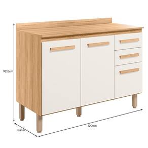 Balcão de Cozinha Intenza 120cm com Tampo MDP - Nicioli O Balcão de Cozinha Intenza 120cm da Nicioli é a escolha ideal para quem busca funcionalidade e sofisticação. Com estrutura em MDP e pintura UV, oferece durabilidade e um acabamento moderno. Possui 2 portas com dobradiças metálicas, 3 gavetas com corrediças telescópicas e uma prateleira interna, proporcionando amplo espaço para organização. Os puxadores em MDF agregam elegância ao design, enquanto os pés em ABS com regulagem de altura garantem estabilidade. Versátil e espaçoso, é perfeito para complementar sua cozinha com praticidade e estilo, acompanhado de um tampo em MDP de 15mm.