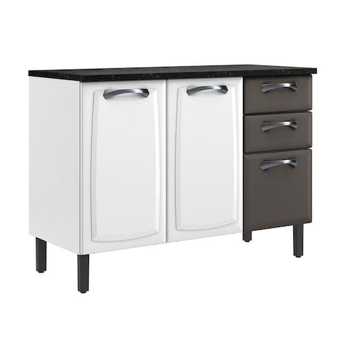 O Balcão de Cozinha 3 Portas e 2 Gavetas Branco e Grafite da linha New Premium é o módulo ideal para completar a sua cozinha. Ele possui também: