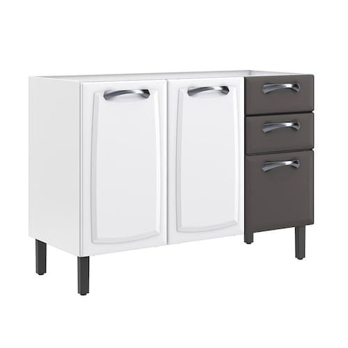 O Balcão de Cozinha 3 Portas e 2 Gavetas Branco e Grafite da linha New Premium é o módulo ideal para completar a sua cozinha. Ele possui também: