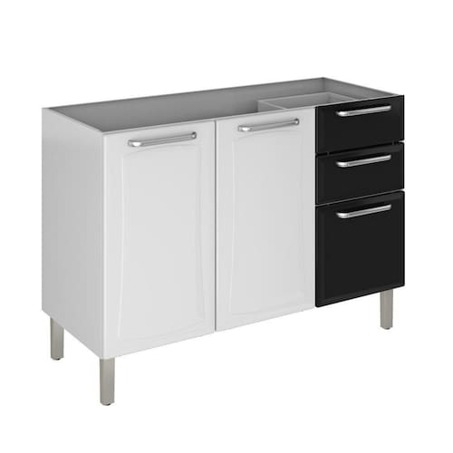 Balcão De Cozinha Itatiaia Tarsila 120cm Em Aço Branco/preto Para Pia O Balcão de Cozinha Itatiaia Tarsila 120cm em Aço Branco/Preto para Pia é a escolha ideal pra quem busca funcionalidade, resistência e um visual moderno na cozinha. Com estrutura em aço de alta qualidade, ele oferece durabilidade e praticidade para o seu dia a dia. Projetado especialmente para instalação de pia, o balcão possui espaço dedicado para encaixe da cuba (sem tampo), facilitando a montagem do conjunto. As dobradiças com sistema slow motion garantem fechamento suave das portas, enquanto os puxadores em ABS cromado trazem um toque de sofisticação ao móvel.