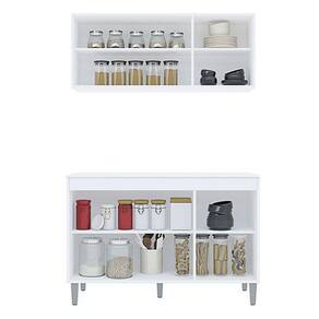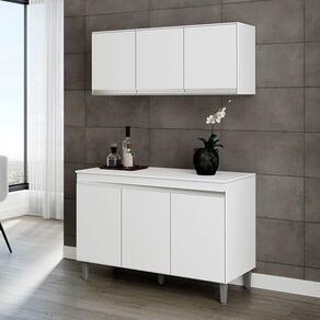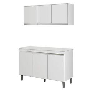 Balcão de Cozinha Manu com Tampo 120 cm e Armário Aéreo Andréia Branco Brilho - AJL