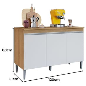 Balcão de Cozinha Manu com Tampo 120cm Amêndoa Branco - AJL