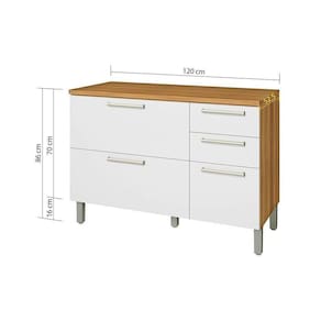 Balcão de Cozinha Burguesa Premium 2 Portas e 3 Gavetas c/ Tampo 120cm Freijo/Grafite - Nesher