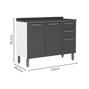 Balcão de Cozinha c/ Tampo Bella c/ 3 Portas e 2 Gavetas 120cm Branco - Bertolini