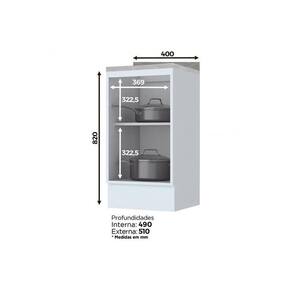 Dimensões(Cm): Comnto(Profundidade): 40cm x Largura: 51cm x Altura: 82cm Material de Estrutura - 100% MDF Tipo de Móvel - Apropriado p/ Uso de Pia - Gabinete s/ Tempo Tipo de Pintura - Pintura em UV (Ultravioleta) Tipo de Acabamento da Pintura - Semi Brilho Tipo de Acabamento - Interior em Trama Vantagens Extras dos Moveis de Cozinha - Apropriado p/ Mármore ou Granito Tipo de Dobradiças - Dobradiças c/ Amortecimento Tipo de puxador - Metal Zamac Quantidade de Portas - 1 Porta de Abrir Quantidade de Prateleiras - 1 Montagem do Produto - Desmontável Certificação de Qualidade - Certificação de Qualidade Aprovada Garantia - 3 meses