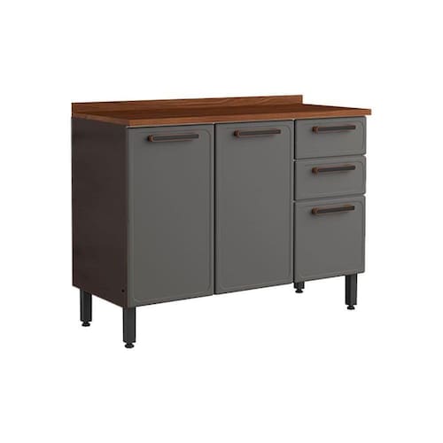 Balcão de Cozinha Estilo 7124 3 Portas e 2 Gavetasc/Tampo 120cm Cinza/Grafite - Bertolini