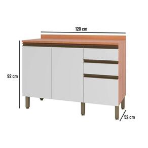 CARACTERÍSTICAS DE MÓVEIS Tipo de Estrutura do Móvel - MDP Tipo de Pintura - UV Tipo de Acabamento da Pintura - Semi Brilho Características de móveis - Gabinete com Tampo Tipo de puxador - ABS/PVC Quantidade de Prateleiras - 1 Prateleira Quantidade de Gavetas - 3 Diferenciais da Gaveta - c/ Corrediças Telescópicas Quantidade de Portas - 2 Portas de Abrir Garantia - 3 meses