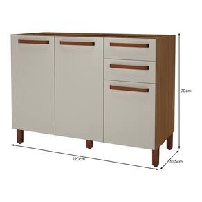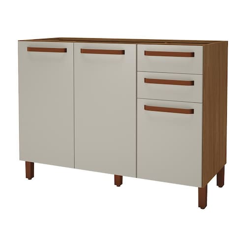 Balcão de Cozinha Monza 120cm 3 Portas e 2 Gavetas sem Tampo - Indékes Funcionalidade e espaço bem distribuído definem o Balcão Monza 120cm sem tampo. Fabricado em MDP com pintura UV, possui 3 portas com prateleira interna e 2 gavetas com corrediças telescópicas, ideais para armazenar utensílios e mantimentos com praticidade. Os puxadores alça em ABS oferecem um toque moderno ao móvel, enquanto os pés em plástico com regulagem de altura garantem estabilidade em diferentes tipos de piso. Modelo versátil que não acompanha tampo, permitindo personalização conforme sua cozinha.