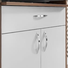 Balcão De Cozinha Multiuso Espaço Micro-ondas Nt3070 Notável Nogal Trend/ Branco New Apresentamos o Balcao de Cozinha Multiuso com Espaco para Micro-ondas NT3070 da Notavel. Para manter sua cozinha organizada sem perder o estilo, o Balcao NT 3070 sera o movel perfeito! Ele possui espaco para 02 fornos, alem de 01 gaveta com corredicas metalicas e 02 portas com amplo espaco interno. A qualidade do movel fica por conta de sua estrutura em MDP, proveniente de madeira de reflorestamento, e do acabamento em pintura UV, que garante maior resistencia e durabilidade ao produto. O produto conta com pes em propileno na cor do proprio produto e puxadores em ABS metalizado.