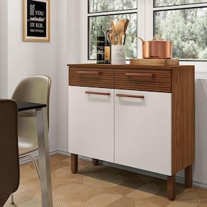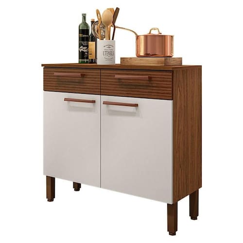 Balcão de Cozinha Nala Nogueira Off White Ripado - Kits Paraná
