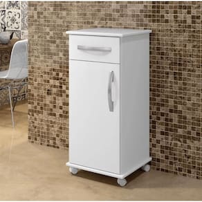 Belíssimo e charmoso balcão pra cozinhas e áreas. Ideal para suporte de galão de água, fruteiras e o que a imaginação mandar. Tampo e base em MDF 18 mm com bordas arredondadas e pintadas mais resistente e evita a infiltração de água, restante do corpo em MDP 15 mm, gaveta com corrediça metálica, prateleira interna, puxadores em abs cromados ergonômicos e rodinhas para facilitar a locomoção do produto. Vai bem na cozinha, áreas de serviço, em escritórios para colocar cafezinho ou galão de água. É muita praticidade e beleza no mesmo produto.