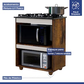 Balcão para Cooktop 4 Bocas Turim: Escala de Brilho; Semi-Fosco Ambiente Principal; Cozinha Altura; 90,2cm Largura; 76,5cm Profundidade; 49cm Peso; 17,5 Acabamento; Pintura uv Material Principal; mdp Possui Portas; Não Possui Prateleiras; 01 Material da Prateleira; mdp Acabamento da Prateleira; Pintura uv Escala de Brilho da Prateleira; Semi-Fosco Peso Máximo por Prateleira; 20 Possui Gavetas; Não Altura dos Pés; 9 Material dos Pés; Plástico Acabamento dos Pés; Plástico Possui Pés; 04 Altura dos Pés; 9 Cor do Pés; Marrom Pés Reguláveis; Não Acompanha Tampo; Sim Material do Tampo; mdp Suporta Granito; Não Balcão Acompanha Pia; Não Medida do Tampo (l x C x e); 76,5cmx49cmx1,5cm) Medidas Espaço Forno (A x L x P)38 x 68 x 47 Cm Medidas Espaço Microondas (A x L x P) 38 x 68 x 47 Cm Balcão Suporta Pia; Não Possui Recorte para Cooktop; Sim Medida do Recorte para Cooktop; 53,5cmx38cm Estilo; Moderno Necessita Montagem; Sim Complexidade da Montagem; Baixa: pode ser montado por uma pessoa sozinha Recomendações de Uso, Manutenção e Limpeza; Limpar com flanela limpa e seca. Não usar produtos abrasivos. Sistema de Montagem; Parafusos Suporta Até (kg); 50