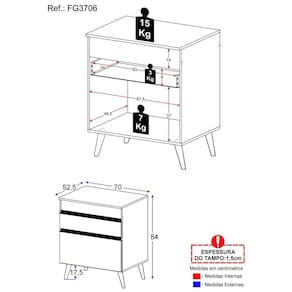 Dimensões do produto montado: Altura: 84cm | Largura: 70cm | Profundidade: 53cm (balcão com tampo) *Você pode consultar as medidas internas na imagem técnica do produto.
