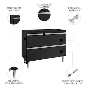 O Balcão de Cozinha Para Pia 100cm Sem Tampo Julia M24 Preto, da Mpozenato se destaca por ser uma peça que combina perfeitamente funcionalidade e estética.