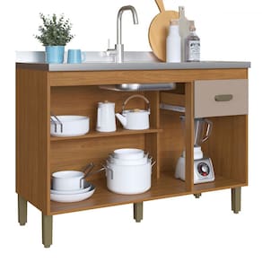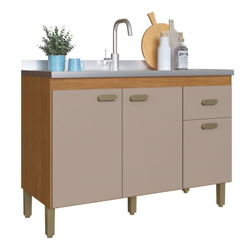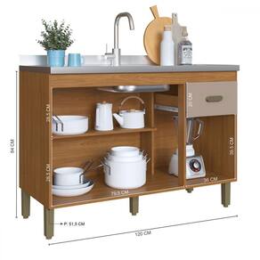 O(a) Balcão de Cozinha para Pia 120 Cm 3 Portas 1 Gaveta Freijó/Camurça - Indékes é produzido em MDP na escala de brilho Fosco, e possui um grau de dificuldade de montagem: Médio.