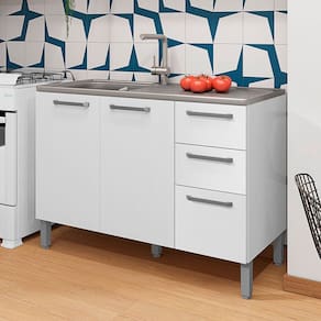O(a) Balcão de Cozinha para Pia 120 Cm Mad Boreal 3 Portas 2 Gavetas Branco/Supremo - Pnr Móveis é produzido em MDP na escala de brilho Semi-Fosco, e possui um grau de dificuldade de montagem: Médio.
