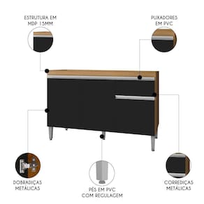Este é o balcão ideal para a sua cozinha, compacto, prático e funcional confira o Balcão de Cozinha Para Pia 120cm 1 Gaveta Tatiane Amêndoa/Preto, da AJL Móveis!