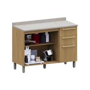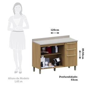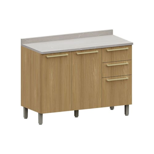 O Balcão para Pia 120cm com 2 Portas e 3 Gavetas com tampo é a escolha ideal para quem busca funcionalidade e estilo. Fabricado em MDP de 15mm, oferece resistência e durabilidade, com acabamento sofisticado, trazendo elegância ao seu espaço.