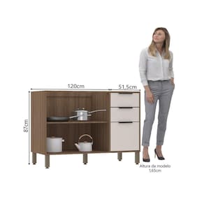 Balcão De Cozinha Para Pia 120cm 2 Portas E 3 Gavetas Sem Tampo Aspen Luciane Móveis Vanilla/beige Desenvolvida com materiais de excelencia, a Cozinha Aspen oferece excelente distribuicao de espaco interno para sua organizacao. E fabricada em 100 MDP e possui acabamento das portas em BP oferecendo durabilidade, resistencia a riscos e facil manutencao. Conta com puxadores tipo Alca em Aluminio Preto dando um toque especial de classe e sofisticacao ao ambiente. Balcao de Cozinha para Pia 120cm 2 Portas e 3 Gavetas sem Tampo Aspen Luciane Moveis