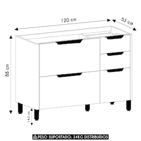 O Balcão de Cozinha para pia é a escolha ideal para quem busca um móvel funcional e com acabamento de qualidade. Produzido em 100% MDF e com cantos arredondados, ele traz um toque de elegância valorizando a Cozinha.
