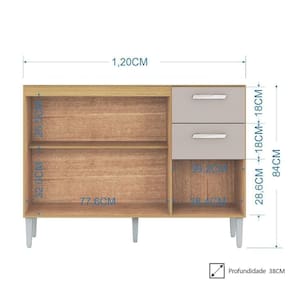 Cor: DamascoOff White | Material: MDP | Model: Livy | Origem: | ProductHeight: 84 | SupplierSimpleName: Balcão de Cozinha para Pia 120cm 3 Portas 2 Gavetas Livy P11 DamascoOff White - Mpozenato