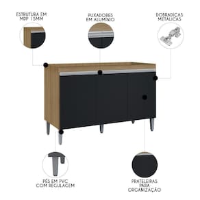 O Balcão de Cozinha Para Pia 120cm Sem Tampo Manu Preto/Amêndoa, da AJL Móveis é uma escolha excelente para quem busca combinar funcionalidade e estilo em um único produto.