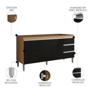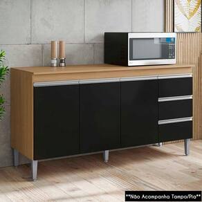 A Cozinha é um cômodo onde precisamos de toda a eficiência possível, não é? Para isso, apresentamos o Balcão de Cozinha Para Pia 160cm 3 Gavetas Andréia Amêndoa/Preto, da AJL Móveis confira!