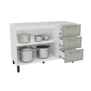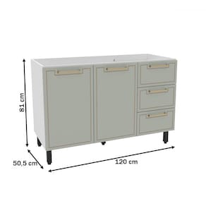 O(a) Balcão de Cozinha para Pia Amara 2 Portas 3 Gavetas Branco/Verde - Politorno é produzido em MDF e MDP na escala de brilho Semi-Fosco, e possui um grau de dificuldade de montagem: Médio.