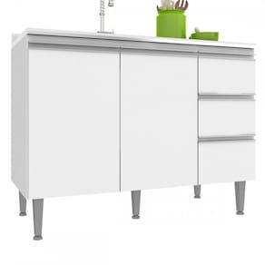 O(a) Balcão de Cozinha Athena 2 Portas 3 Gavetas Branco - Irm Móveis é produzido em MDP na escala de brilho Semi-Brilho, e possui um grau de dificuldade de montagem: Médio.