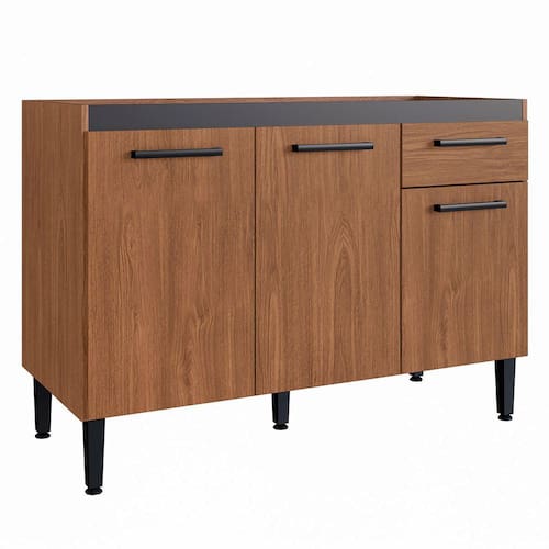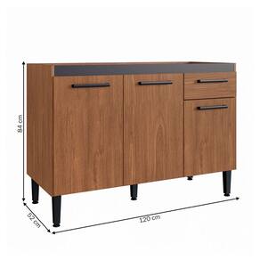 Balcão de Cozinha para Pia Giovanna 3 Portas 1 Gaveta Freijó/Preto - Irm Móveis - Marrom