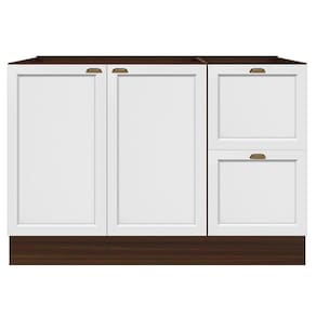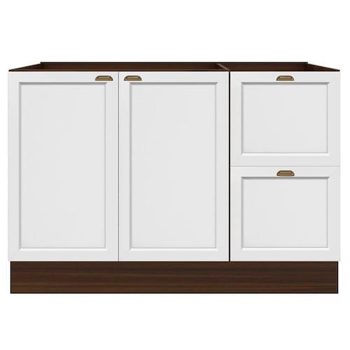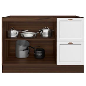 O(a) Balcão de Cozinha Unna 2 Portas 2 Gavetas Nogueira/Branco - Poliman Móveis é produzido em MDF e MDP na escala de brilho Fosco, e possui um grau de dificuldade de montagem: Médio.
