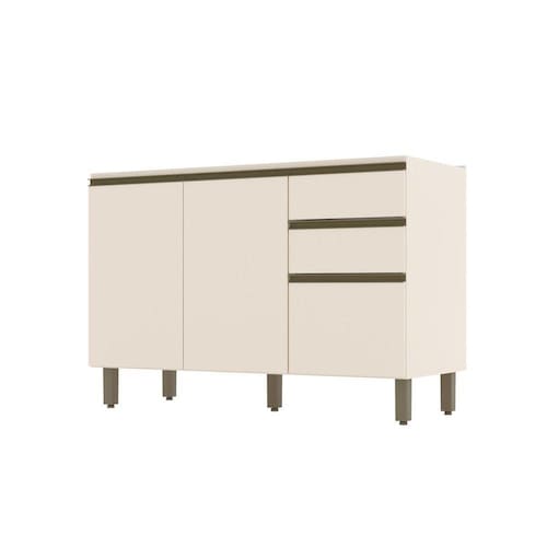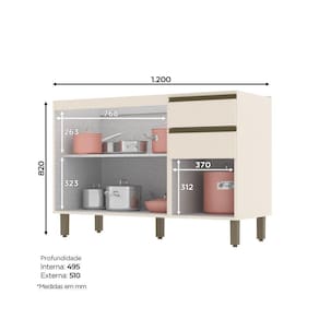 FICHA TÉCNICA: Cor Interna: Trama Acabamento: Na versão Duna com Cristal a Pintura é UV Texturizada e na versão Off White a Pintura é UV Escala de Brilho: Na versão Duna com Cristal é Fosco e na versão Off White é Brilho Material do Fundo: MDF Material Principal: MDF Qtd. Gavetas: 2 Und Peso Máximo por Gaveta: Cada gaveta suporta até 3 Kg, a carga deve ser distribuída uniformemente. Material do Puxador Gaveta: Alumínio Material da Corrediça: Telescópica Material da Gaveta: MDF Qtd. Portas: 3 Und Material da Dobradiça: Metálica de 35mm Material do Puxador Porta: Alumínio Tipo Porta: Bater Qtd. Prateleiras: 1 Und Peso Máximo por Prateleira: Cada prateleira suporta até 8 Kg, a carga deve ser distribuída uniformemente. Material da Prateleira: MDF Qtd. Pés: 5 Und Pés Reguláveis: Sim Material Pés: ABS Altura Pés/Rodapés: 14,5 Cm Balcão Acompanha Pia: Não Tamanho Indicado da Pia: 120cm x 52cm Acompanha Tampo: Não Produto Suporta até -Kg-: 25 Kg Tampo possui recorte p/Cooktop: Não Pode ser montado suspenso: Não Medidas Montado: 82 x 120 x 51 Cm Peso Montado: 30 Kg