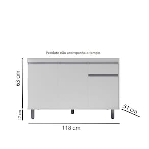Balcão de Cozinha Pop 120cm Branco S/Tampo - Nathan