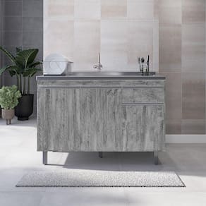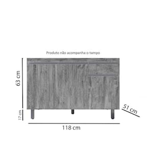 Balcão de Cozinha Pop 120cm Rústico S/Tampo - Nathan - Cinza Claro