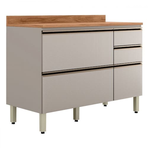 O(a) Balcão de Cozinha Proença 1 Porta 4 Gavetas 100% Mdf Nogueira/Nude - Demóbile é produzido em 100% MDF na escala de brilho Fosca com Textura, e possui um grau de dificuldade de montagem: Difícil.