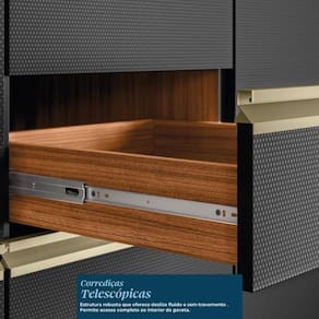 ESPECIFICAÇÕES: Estrutura em MDF Pintura UV 1 Porta basculante Dobradiças com amortecimento Pistão a gás 1 Gaveta Corrediças telescópicas Puxadores metálicos Tampo em MDF Pés com regulagem de altura Amplo espaço interno